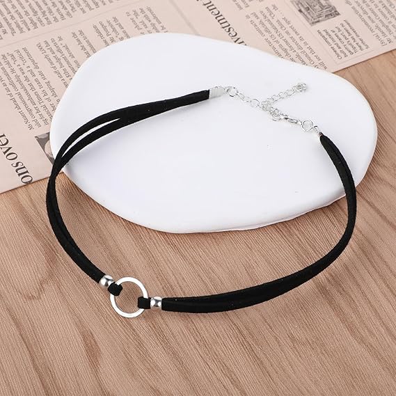 AKSAMITNY CHOKER Z SREBRNYM KÓŁECZKIEM