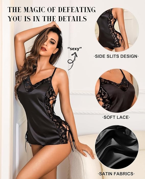 Wykonana z jedwabiście miękkiego materiału, ta satynowa babydoll otula ciało jak ciepły szept. Gładka tkanina subtelnie opływa sylwetkę, eksponując jej krągłości i zapewniając niesamowity komfort. Boczny rozporek dodaje pikanterii i finezyjnie odsłania nogi przy każdym ruchu. Delikatna koronka przy dekolcie oraz cienkie, regulowane ramiączka nadają całości egzotycznego charakteru i wyjątkowej lekkości.